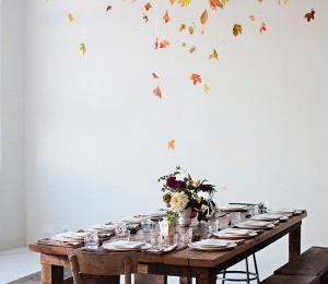 Sugestia de astăzi este o masă cu băncuţe din brad, vopsite cu baiţ şi eventual câteva scaune vechi, tapiţate cu maro sau vişiniu. Deasupra ei trebuie doar să creezi o plasă de frunze arămii, iar spaţiul de poveste începe să prindă contur.
