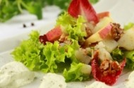 Stropește cu dressing și amestecă bine toate ingredientele.