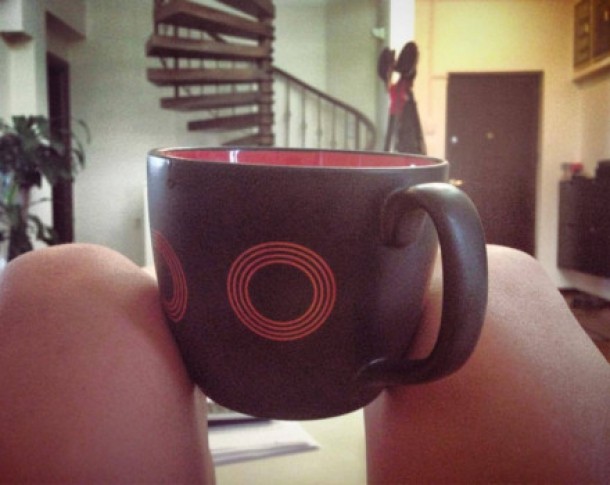 Cori Gramescu a postat pe un site de socializare o fotografie cu cana ei de cafea din aceasta dimineata. Este un adevarat exercitiu de echilibristica, daca stam sa ne gandim un pic, mai ales ca antrenoarea isi tine cana cu genunchii si nu cu mainile.