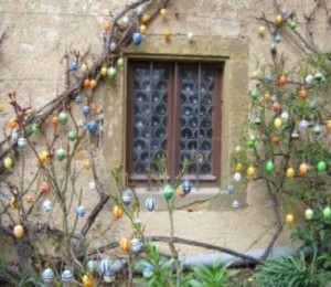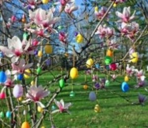 In America, in ziua de Pasti se ascund in jurul a 30-40 de oua prin curte si prin casa si copii trebuie sa le gaseasca pe toate. Cel sau cea care le gaseste pe cele mai multe, castiga. Ei bine, americanii impodobesc si copacii din gradinile lor, astfel o frumoasa decoratiuni ar putea fi aceasta.