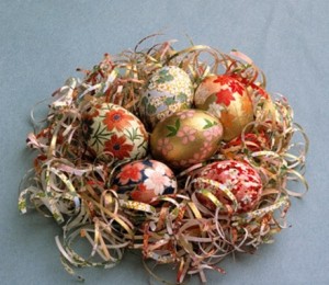 Cosuletele pot fi din lemn sau impletite din crengi sau poti alege sa fie simple boluri, pe care sa le umpli cu iarba sau hartie creponata, colorata sau alba, astfel ouale vor fi evidentiate foarte frumos. O alta modalitate ar fi sa umpli un borcan sau o vaza frumoasa transparenta cu ouale pe care le ai vopsite si decorate, singura chestiune este, daca doresti sa faci asa ceva, ouale pe care le folosesti trebuie sa fie goale in interior sau din plastic, material, sticla sau ceramica, in orice caz nu in starea lor efectiva, deoarece, in foarte scurt timp ar capata un miros urat.