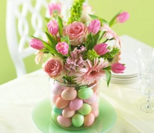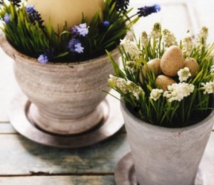 Poti face o frumoasa combinatie de flori in ghiveci si cateva oua frumos aranjate pe marginea acestuia sau o vaza, in care sa adaugi si un frumos contur de matisor, ar face o schimbare de stil, chiar daca este pentru o perioada mai scurta.