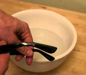 Introdu ochelarii într-un lighean cu apă caldă, unde îi vei lăsa preţ de câteva minute. Scoate-i apoi şi foloseşte-ţi mâinile pentru a îi ajusta. Dacă e nevoie, mai bagă-i în ligheanul cu apă caldă pentru a îi face mai maleabili.