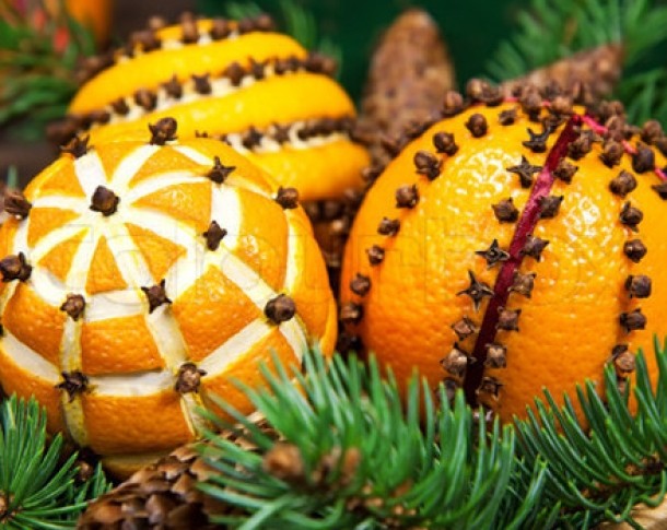 Ca globuri poti agata portocale intregi, simple sau ornate, spre exemplu, cu modele facute din cuisoare. Ulterior, le poti lasa sa se usuce si le folosesti pe post de protectie impotriva moliilor in sifonier! O alta varianta ar mai fi felii de portocala uscate in cuptor. Vor imprastia in camera un miros placut si arata frumos.