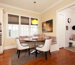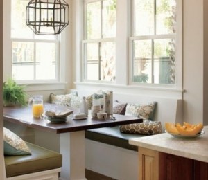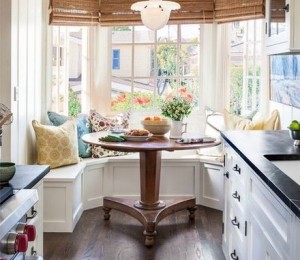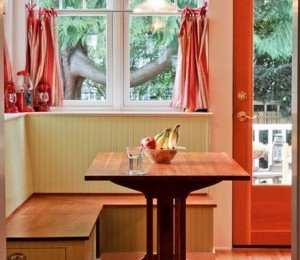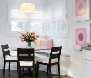 Stilizeaza-ti coltul din bucatarie dupa bunul plac. Opteaza pentru o masa de bucatarie care poate fi accesorizata usor cu niste scaune sic, cateva pernute colorate si paturi calduroase. In loc de scaune, poti sa achizitionezi chiar o bancuta cu ladita in care sa iti depozitezi jocurile care te tin ocupata in weekend cu prietenii.