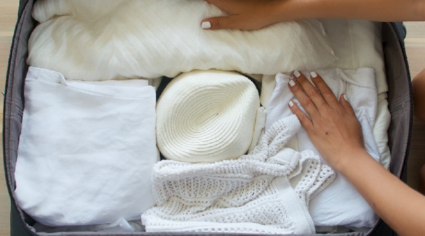 Apoi, pune piesele mai grele precum pantofii şi jeanşii pe fundul geamantanului. Imediat după ce ai făcut asta, aşază, pe centrul valizei, pălăria. Apoi, în jurul ei, pe boruri, vei pune piesele vestimentare uşoare precum bluzele, tricourile şi rochiţele.