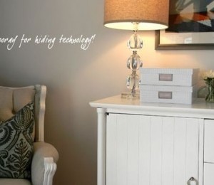 Din fericire, o companie americana are o solutie care te ajuta sa ascunzi cutiile si cablurile in interiorul unor cutii de depozitare simple si albe. Solutia este incredibil de simpla si usor de facut cu un cutter de cutii. Sursa: neatorama.com.