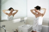 Oglinzile oferă senzația de mărire a unui spațiu. Alege deci o oglindă supradimensionată pentru baia ta.