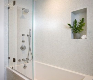 Folosind o perdea de duș faci încăperea să pară și mai mică. Înlocuind perdeaua cu un geam vei face baia să pară mult mai mare.