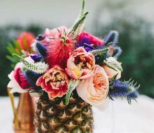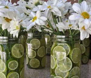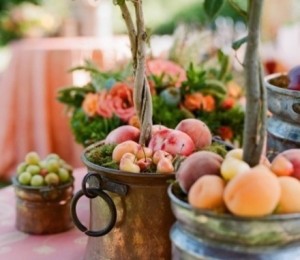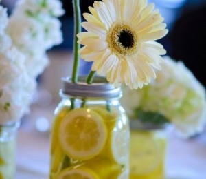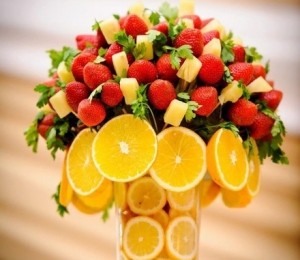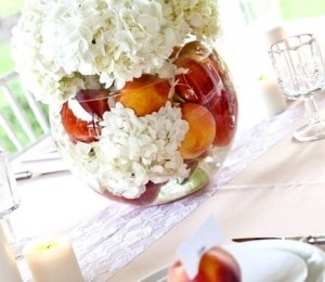 Combina aranjamentul floral cu fructele si vei obtine o decoratiune de masa cat se poate de inedita. Spre exemplu, poti pune buchete de flori in vaze transparente, pline cu apa in care sa inoate fructele tale preferate.