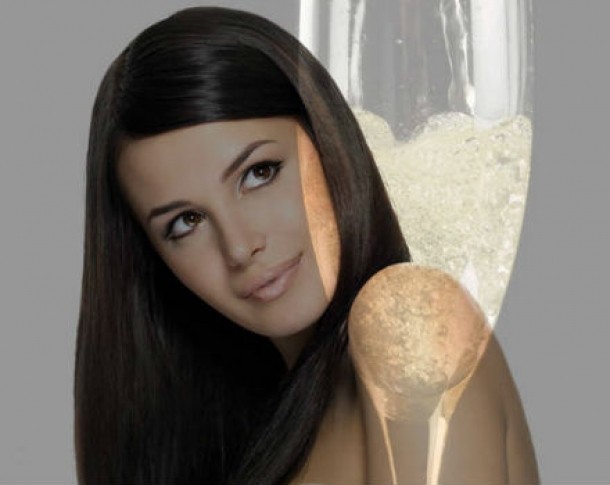 Un pahar de sampanie face minuni pentu parul tau. Dupa ce ti-ai spalat parul, atunci cand este inca umed, clateste cu sampanie parul tau, incepand cu radacina. Trece-ti degetele prin par, clateste apoi cu apa calduta si usuca-ti parul cu uscatorul.