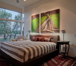 Tabloul pe care îl alegi pentru peretele pe care aşezi patul trebuie să se potrivească cu stilul folosit în încăpere. Dacă este un domitor contemporan, poate un tablou abstract sau supradimensionat s-ar potrivi cel mai bine. Într-un decor chic, o operă de artă jucăuşă este cea mai bună alegere.