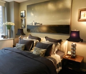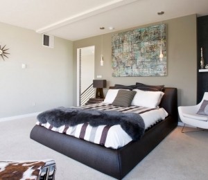 Un tablou mare deasupra patului matrimonial poate fi punctul focal al dormitorului. Poţi folosi această strategie în beneficiul tău, mai ales dacă vrei ca încăperea să fie cât mai simplu decorată, dar în acelaşi timp să nu plictisească.