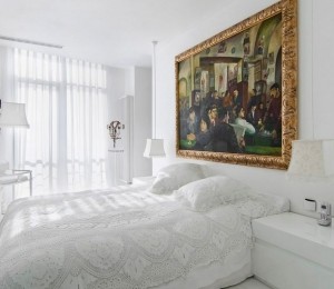 Desigur, tabloul nu trebuie să fie neapărat punctul focal al încăperii. Poţi alege să îl foloseşti ca un accesoriu pentru a atrage atenţia asupra altor elemente din cameră. Acest lucru poate fi realizat prin folosirea contrastelor puternice în dormitor.
