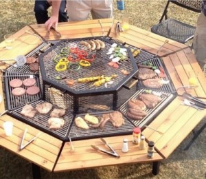 Mobilier de timp liber 3 in 1: masa, gratar si zona pentru foc