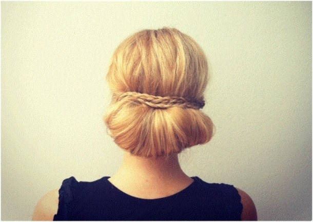 5. Înfăşoară apoi cozile împletite în jurul cocului obţinut.