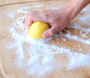 Curăță-l în profunzime din când în când – după ce ai tocat carne crudă sau după ce ai curățat o rodie, tocătorul are nevoie de o curățare în profunzime. Pentru asta, ai nevoie de o jumătate de lamâie a cărei suprafață să fie acoperită cu sare grunjoasă. Freacă tocătorul cu lamiae și sare pentru a îndepărta petele și pentru a elimina mirosurile.