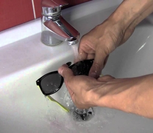 Spălând ochelarii de soare cu detergent de vase, îi vei degresa, îndepărtând orice urmă de machiaj sau transpiraţie rămasă pe rame sau lentile.