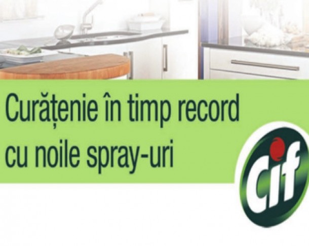 “In prezent, consumatoarele sunt din ce in ce mai ocupate, au nevoie de timp pentru ele si pentru cei dragi, cauta solutii rapide si usoare pentru curatenia locuintei, iar spray-urile Cif sunt cele mai potrivite pentru a le veni in ajutor. Noile produse Cif Spray ofera solutii eficiente pentru curatenia in timp record.”, declara Monica Tamas, Senior Brand Building Manager Household Cleaners.
