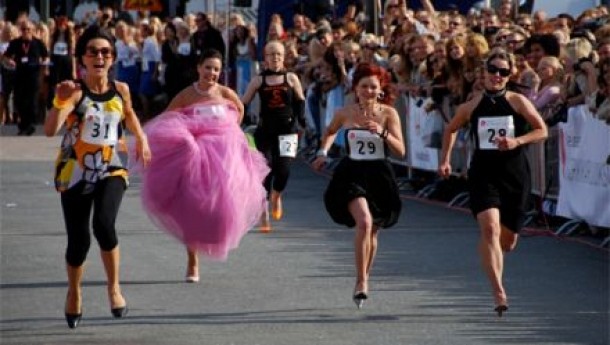 Catarati pe escarpini dotati cu tocuri de 8 cm cel putin, controlati de un aprod de justitie, concurentii se vor confrunta intr-o cursa de tip stafeta. Victoria este adjudecata de concurentii care parcurg in timpul cel mai scurt 180 m.