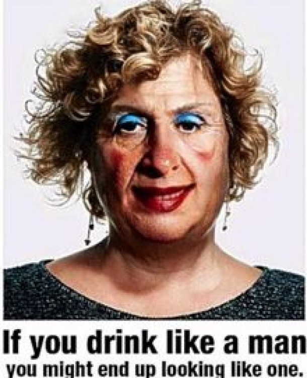 Campania lansata de Drug & Alcohol Service din Londra a luat cu asalt zona underground, afise precum cel din stanga fiind lipite in pasaje si la metrou. Afisele infatiseaza o femeie care probabil se apropie de varsta a treia, cu pielea lasata, barbie dubla si cearcane adanci in jurul ochilor. Sub fotografie este scris cu litere de o schioapa “daca bei ca un barbat, ai sa ajungi sa arati ca unul”.