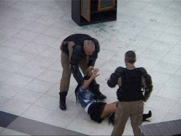 Ca si cand nu ar fi fost suficient ca era singura, intr-un mall din care nu putea iesi, asistenta de la "Un show pacatos" a fost, de asemenea, martora unui jaf la un magazin de bijuterii.
