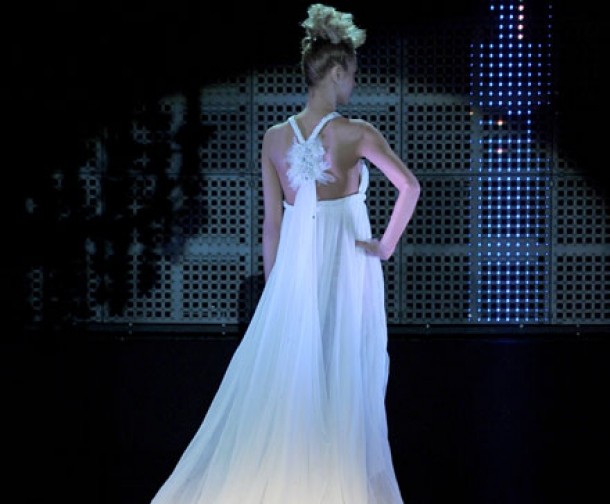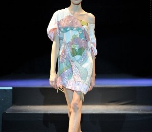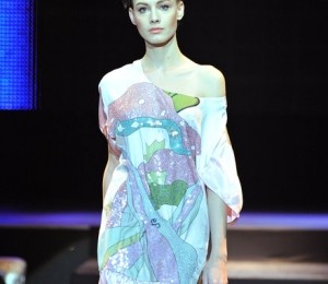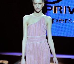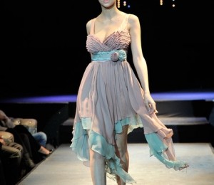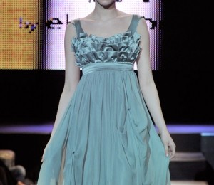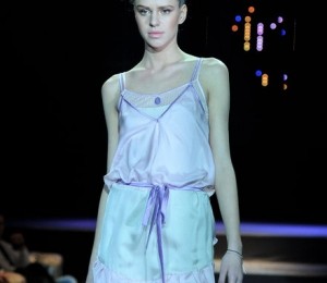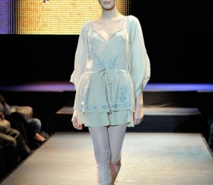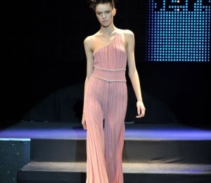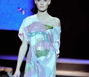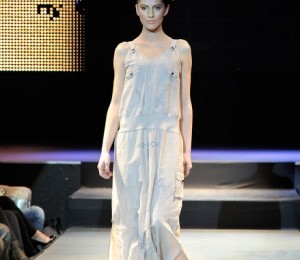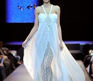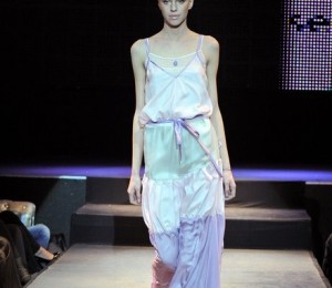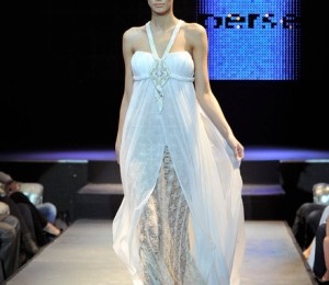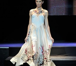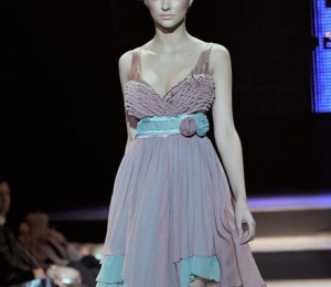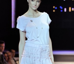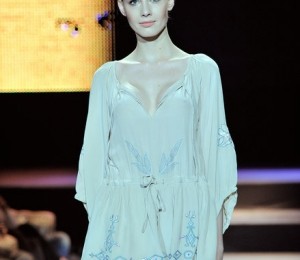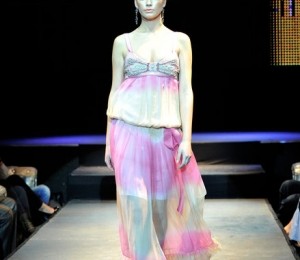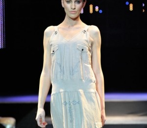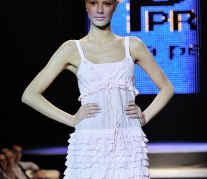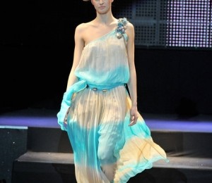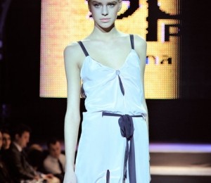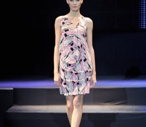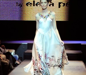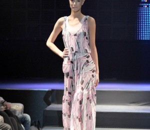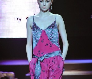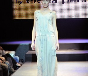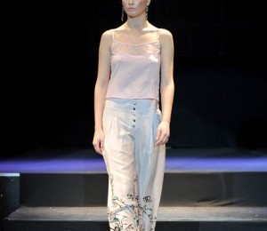 Rochiile feminine, matasea imprimata sunt cateva elemente importante. Broderia manuala, detaliul studiat au creat un look senzual, glamour in tonuri pastelate de rozuri si bejuri iar ca accente putem regasi negrul si turqois-ul, culoarea acestei veri. Pe langa fluiditatea rochiilor designerul a propus si pantaloni imprimati cu talie inalta, salopete lungi si scurte, brodate manual sau din matase imprimata. Rochia de mireasa ne trimite cu gandul la un drapaj grec, iar broderia de pe spate descrie discrete aripi de inger. Ca si accente sunt cristalele incolore care capteaza si retransmit delicat lumina de pe albul matasii.