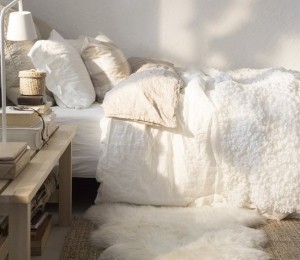 Poţi să îţi transformi patul în cel mai călduros loc din casa ta. Foloseşte perne decorative mari şi pufoase, pături cocolino sau de lână, iar pe jos aşază covoare din mătase sau chiar din blănuri de animale. Spre exemplu, covoraşele din blană de capră sau de miel sunt la mare căutare sezonul aceste şi le poţi procura din zonele de munte în care vei merge în vacanţă.