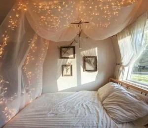 Dacă eşti o fire romantică, îţi place să petreci timpul liber în camera ta, citind o carte şi savurând o ciocolată caldă, poţi să îţi creezi un spaţiu călduros folosindu-te de o plasă de beculeţe pe care să o prinzi de tavan. Astfel, te vei bucura de o atmosferă intimă, specială şi călduroasă, care te va ajuta să te relaxezi aşa cum nu reuşeşti să o faci în altă parte.