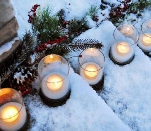 Lumineaza-le calea spre casa ta vizitatorilor cu lumanari. Asaza de o parte si de alta a aleii care duce la usa de la intrare in casa, tot felul de lumanarele, fie de aceeasi culoare, fie de culori diferite. Astfel, curtea ta va fi mult mai primitoare si mai calduroasa, chiar daca este acoperita cu zapada.