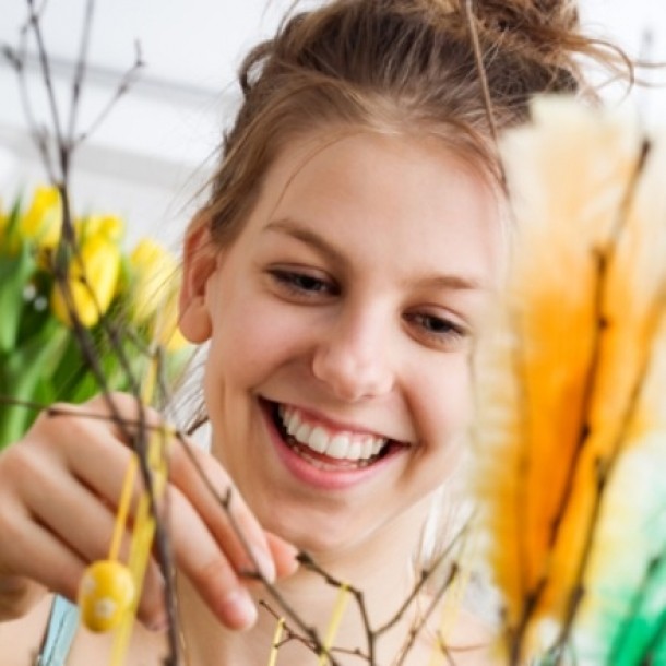 In perioada Sarbatorilor Pascale, intreaga lume pare ca infloreste, iar natura revine la viata, gratie primaverii. Incearca sa "capturezi" un pic din natura si sa o aduci in interiorul locuintei tale - etaleaza cateva flori proaspete de primavara si pune-le in vaze frumoase si colorate, peste tot prin casa – liliac, lalele, narcise. De exemplu, poti sa asezi o singura floare, cu o tulpina mai lunga, cum ar fi o lalea sau o margareta, intr-o sticla goala de vin. Sau aduna cateva flori de liliac sau orice flori de primavara si pune-le intr-un borcan mare cu apa, legate cu o panglica pastel. Ai vazut cat este de simplu?