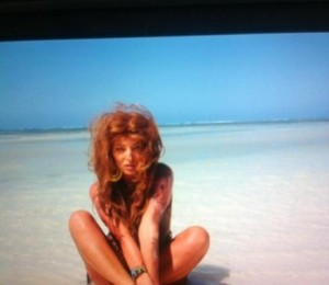 Intr-una dintre fotografii apare cu parul vopsit roscat aramiu, perfect intins si purtand o palarie. Nu putem sa nu remarcam asemanarea acesteia cu o alta vedeta autohtona, Bianca Dragusanu.