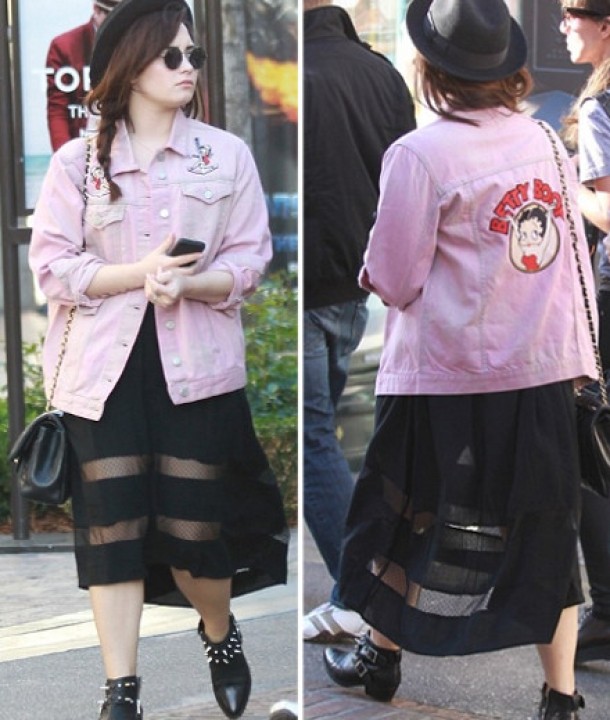 Aflata la cumparaturi alaturi de prieteni, la Hollywood, Demi Lovato a fost surprinsa purtand o tinuta de-a dreptul neinspirata, care dadea senzatia ca s-a imbracat pe intuneric.