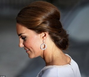 Machiajul si coafura au fost realizate in stilul caracteristic. Kate a ales sa isi puna in evidenta privirea cu un machiaj stil smokey-eyes si a purtat un coc elegant.
