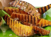 1. Se preîncălzește cuptorul la 190 grade Celsius și se unge o tavă cu puțin unt, apoi se curăță cartofii dulci și se taie cubulețe mici, iar aceștia se întind în tavă.