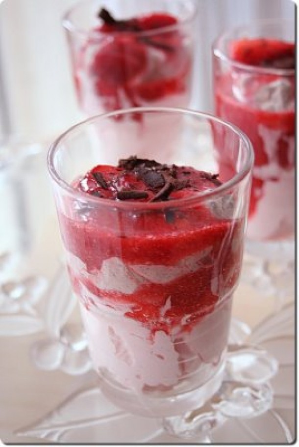 Se decoreaza cu fulgi de cacao si frunze proaspete de menta.