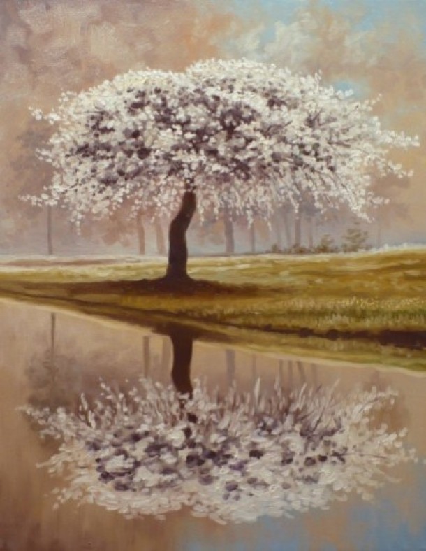 (foto: lucrarea "Pomul primaverii" de Eduard Sandu, ulei pe panza, 45x35)