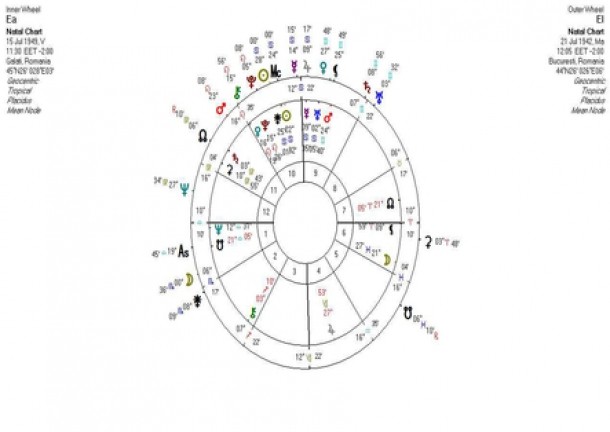 Suprapunerea celor doua teme astrale scoate in evidenta doua conjunctii.