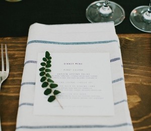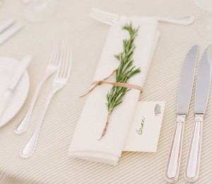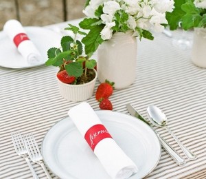Această idee este nemaipomenită pentru atunci când optezi pentru şerveţele de masă albe. Trebuie doar să le faci rulou, iar la mijloc să le prinzi cu mărturia sau chiar cu o bandă personalizată cu numele voastre şi data nunţii.