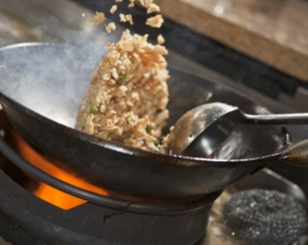 4. Transfera amestecul de orez intr-un vas de copt sau intr-o tava mai inalta, care rezista la temperaturi inalte. Acopera cu o folie subtire de aluminiu. Coace compozita timp de 30 de minute sau pana cand este gata.