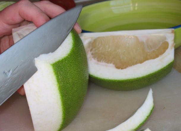 Pomelo este o combinatie intre portocala si grepfruit. Pentru ca este plin de vitamine si minerale si 100 de grame de fruct contin doar 40 de calorii, pomelo este folosit cu succes si in curele de detoxifiere.