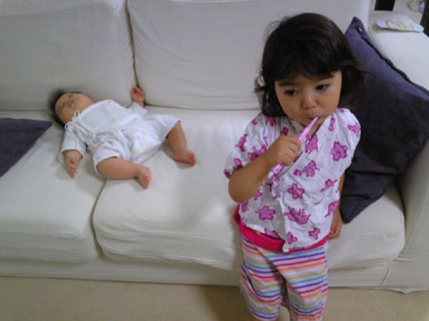 -O periuta de dinti alimentata cu baterii ori, si mai bine, una muzicala poate atrage un prichindel recalcitrant.