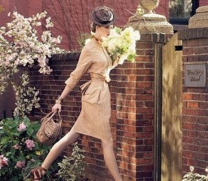 Parul strans intr-un coc lejer la baza cefei. Blush-ul si rimelul sunt singurele retusuri recomandate.