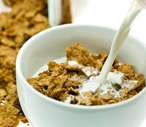 Mic dejun: o ceasca mare de cereale integrale cu lapte.