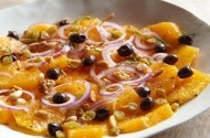 Prânzul: salată de portocale: 1 portocală, 1 ceapă roşie, 2 smochine, 1 lingură de ulei de măsline şi busuioc.