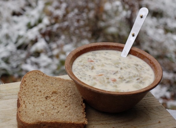 Cina: 100 ml supa de orez si o mana de miez de nuca.