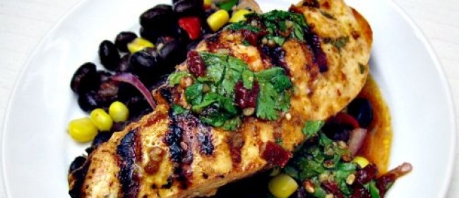 Piept de pui cu fasole neagră şi chimen