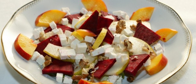 Se curata sfecla de coaja si se taie rondele subtiri. Branza se feliaza si apoi se taie...
