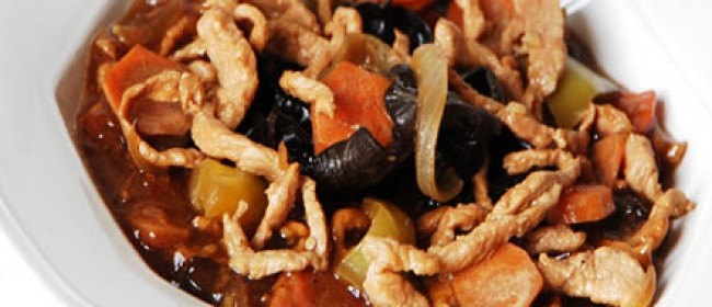 Carnea de porc se taie felii si de  prajeste  in baie de ulei. Apoi se taie ceapa...