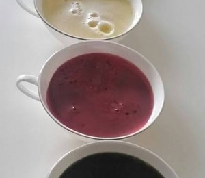"Pentru ca mi-ati cerut un exemplu al meniului meu din saptamana de detoxifiere, iata "mesele" de azi (fiecare bautura, suc sau supa, are 300 ml):